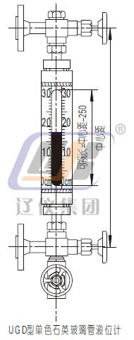 U G D 系列單色石英玻璃管液位計是由表體、石英管、上、下閥及排污閥等組成。上下閥為偏心直角針形閥,便于清洗。液位計法蘭與容器上的法蘭連接構成連通器,利用連通器原理和自然光在液體中折、反射的原理, 在氣相, 自然光直接透過石英管從可視窗射出, 在液相, 自然光直接透過石英管照射到不透明的介質(zhì)上被吸收而呈現(xiàn)出介質(zhì)的本色, 這樣氣、液的分界面就清晰可辨了。