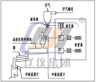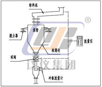 本儀表由(一次表)粉體沖量式流量變送器;(二次表)粉體沖量式流量儀;穩(wěn)流裝置(一般情況下,由生產(chǎn)廠指導用戶設(shè)計、制造)三部分組成(需流量調(diào)解時應(yīng)配流量調(diào)節(jié)器),系統(tǒng)配套見下圖